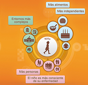 A medida que el niño crece, vivir con alergia a la proteína de la leche de vaca se hace cada vez más complejo. El riesgo de exposición accidental a la leche de vaca aumenta al aumentar la autonomía del niño e interaccionar en entornos más extensos. Las alergias pueden afectar a la calidad de vida y desorganizar la actividad familiar. [Cummings 2010]